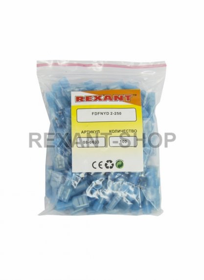 КЛЕММА ПЛОСКАЯ полностью изолированная (КППИн гн - 6.6мм) нейлон 1.5-2.5ммІ (FDFN 2-250) Blue REXANT