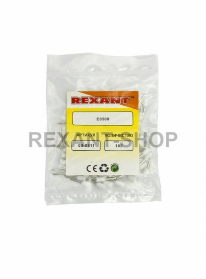 НАКОНЕЧНИК ШТЫРЕВОЙ ВТУЛОЧНЫЙ изолированный (НШВИ F-8мм) 0.5мм² (E0508, СЕ005008white) белый REXANT предназначен для создания быстрого и качественного подключения различного электрооборудования и монтажа электросетей. Такой современный способ подготовки кабеля к соединению заменяет процесс облуживания или скрутки многожильных медных проводов, формируя целостностное окончание кабеля с последующим подключением промышленного или бытового электрооборудования. Втулочный наконечник НШВИ 8мм состоит из латуни, с поверхностным электролитическим лужением, и рассчитан на монтаж одного проводника с соответствующим сечением под опрессовку. Предварительно зачищенная жила заводится внутрь латунной втулки, и обжимается специальными пресс-клещами (HT-864 арт.12-3202, 12-3202-4; HT-866 арт.12-3205; HT8 6-4 арт.12-3106; HT-301E арт.12-3113, 12-3114, 12-3013) в считанные секунды. Для удобства заведения многожильного провода внутрь латунной втулки предусмотрена манжета конической формы, изготовленная из поливинилхлорида