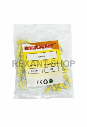 НАКОНЕЧНИК ШТЫРЕВОЙ ВТУЛОЧНЫЙ изолированный (НШВИ F-8мм) 1мм² (E1008, СЕ010008red) желтый REXANT предназначен для создания быстрого и качественного подключения различного электрооборудования и монтажа электросетей. Такой современный способ подготовки кабеля к соединению заменяет процесс облуживания или скрутки многожильных медных проводов, формируя целостностное окончание кабеля с последующим подключением промышленного или бытового электрооборудования. Втулочный наконечник состоит из латуни, с поверхностным электролитическим лужением, и рассчитан на монтаж одного проводника с соответствующим сечением под опрессовку. Предварительно зачищенная жила заводится внутрь латунной втулки, и обжимается специальными пресс-клещами (HT-864 арт.12-3202, 12-3202-4; HT-866 арт.12-3205; HT8 6-4 арт.12-3106; HT-301E арт.12-3113, 12-3114, 12-3013) в считанные секунды. Для удобства заведения многожильного провода внутрь латунной втулки предусмотрена манжета конической формы, изготовленная из поливинилхлорида (ПВХ), обеспечивающая надежную защиту соединения от влаги и других внешних воздействий. Технические характеристики: