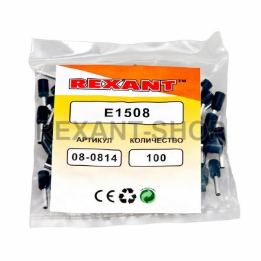 НАКОНЕЧНИК ШТЫРЕВОЙ ВТУЛОЧНЫЙ изолированный (НШВИ F-8мм) 1.5мм² (E1508, СЕ015008black) черный REXANT предназначен для создания быстрого и качественного подключения различного электрооборудования и монтажа электросетей. Такой современный способ подготовки кабеля к соединению заменяет процесс облуживания или скрутки многожильных медных проводов, формируя целостностное окончание кабеля с последующим подключением промышленного или бытового электрооборудования. Втулочный наконечник состоит из латуни, с поверхностным электролитическим лужением, и рассчитан на монтаж одного проводника с соответствующим сечением под опрессовку. Предварительно зачищенная жила заводится внутрь латунной втулки, и обжимается специальными пресс-клещами (HT-864 арт.12-3202, 12-3202-4; HT-866 арт.12-3205; HT8 6-4 арт.12-3106; HT-301E арт.12-3113, 12-3114, 12-3013) в считанные секунды. Для удобства заведения многожильного провода внутрь латунной втулки предусмотрена манжета конической формы, изготовленная из поливинилхлорида (ПВХ), обеспечивающая надежную защиту соединения от влаги и других внешних воздействий. Технические характеристики: