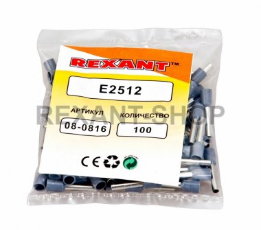 НАКОНЕЧНИК ШТЫРЕВОЙ ВТУЛОЧНЫЙ изолированный (НШВИ F-12мм) 2.5мм² (E2512, СЕ025012blue) синий REXANT предназначен для создания быстрого и качественного подключения различного электрооборудования и монтажа электросетей. Такой современный способ подготовки кабеля к соединению заменяет процесс облуживания или скрутки многожильных медных проводов, формируя целостностное окончание кабеля с последующим подключением промышленного или бытового электрооборудования. Втулочный наконечник состоит из латуни, с поверхностным электролитическим лужением, и рассчитан на монтаж одного проводника с соответствующим сечением под опрессовку. Предварительно зачищенная жила заводится внутрь латунной втулки, и обжимается специальными пресс-клещами (HT-864 арт.12-3202, 12-3202-4; HT-866 арт.12-3205; HT8 6-4 арт.12-3106; HT-301E арт.12-3113, 12-3114, 12-3013) в считанные секунды. Для удобства заведения многожильного провода внутрь латунной втулки предусмотрена манжета конической формы, изготовленная из поливинилхлорида (ПВХ), обеспечивающая надежную защиту соединения от влаги и других внешних воздействий. Технические характеристики:
