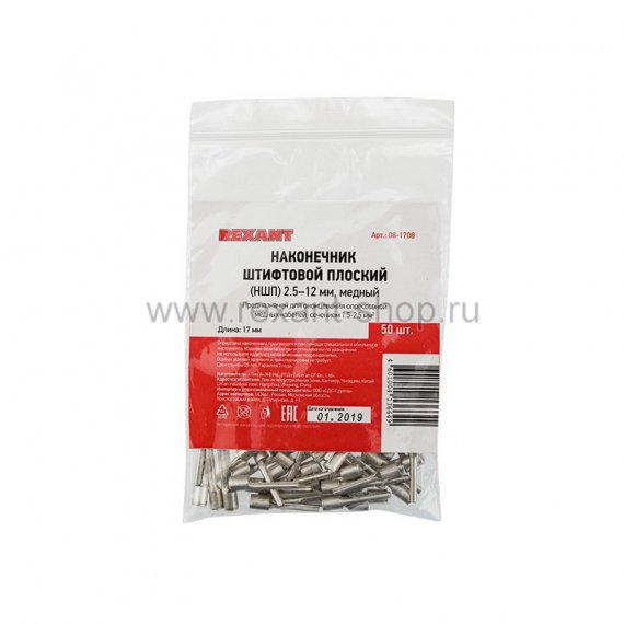 Наконечник штифтовой плоский кабельный (НШП) 2.5–12 REXANT