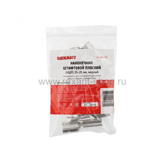Наконечник штифтовой плоский кабельный (НШП) 35–20 REXANT
