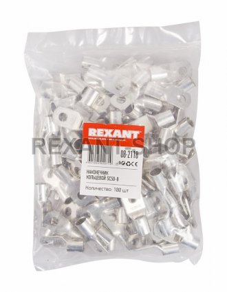 НАКОНЕЧНИК КОЛЬЦЕВОЙ (НК ø8.4мм) 50мм² (SC50-8) REXANT предназначен для создания качественного подключения электрооборудования, которое осуществляется через контактное соединение на основе винтовой фиксации. Такая клемма используется для оконцовывания многожильных медных проводов при монтаже электрооборудования силовых или осветительных сетей (электрооборудования промышленных предприятий, систем отопления, горячего водоснабжения, вентиляции и кондиционирования, обогрева водостоков и дренажа, лифтов или сверхмощного бытового электрооборудования). Кольцевой не изолированный наконечник REXANT изготовлен из латуни, с поверхностным электролитическим лужением, которое надежно защищает его от различных внешних воздействий. Использование такого наконечника для упрощения стыковки и монтажа кабеля обеспечит лучшую механическую прочность соединения на разрыв и максимально надежный контакт с кабельной жилой. Обжатие производится специальными пресс-клещами (рекомендуем - HT-2515 арт.12-3055; HT-2517 арт.12-3057) после заведения предварительно подготовленной жилы в трубную часть наконечника до упора. Данный наконечник применим для медных проводов с сечением 50мм². Рабочий размер кольцевого монтажного отверстия d2 = 8.4мм. Применение обжимных кольцевых наконечников дает возможность значительно ускорять электромонтажные работы, при этом появляется возможность многократного отсоединения и присоединения проводов к силовому оборудованию.