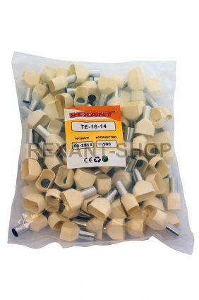 НАКОНЕЧНИК ШТЫРЕВОЙ ВТУЛОЧНЫЙ изолированный (НШВИ F-14мм) 2х16мм² (TE-16-14) бежевый REXANT предназначен для создания быстрого и качественного подключения различного электрооборудования и монтажа электросетей. Такой современный способ подготовки кабеля к соединению заменяет процесс облуживания или скрутки многожильных медных проводов, формируя целостностное окончание кабеля с последующим подключением промышленного или бытового электрооборудования. Втулочный наконечник состоит из латуни, с поверхностным электролитическим лужением, и рассчитан на монтаж 2-х проводников с соответствующим сечением под опрессовку. Предварительно зачищенные жилы заводятся внутрь латунной втулки, и обжимается специальными пресс-клещами (HT-301S арт.12-3119) в считанные секунды. Для удобства заведения многожильных проводов внутрь латунной втулки предусмотрена манжета конической формы, изготовленная из поливинилхлорида (ПВХ), обеспечивающая надежную защиту соединения от влаги и других внешних воздействий. Технические характеристики: