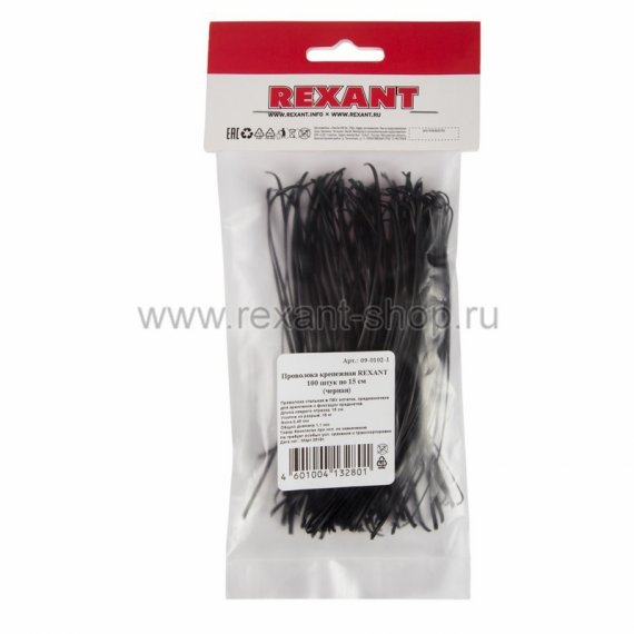 Проволока упаковочная в ПВХ, длина 15 см., черная (упак. 100 шт) REXANT