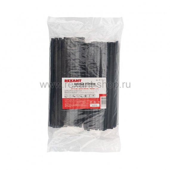 Клеевые стержни d=7,4 мм, L=200 мм, черные (упак. 1 кг) REXANT