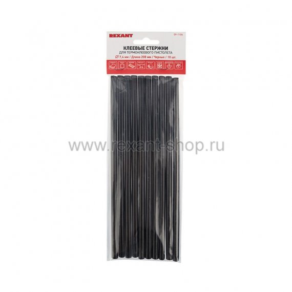 Клеевые стержни d=7,4 мм, L=200 мм, черные (упак. 10 шт.) REXANT