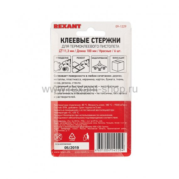 Клеевой стержень состоит из смолы ЭВА, поэтому он нетоксичен, не выделяет запахов и не содержит в своем составе растворителей.