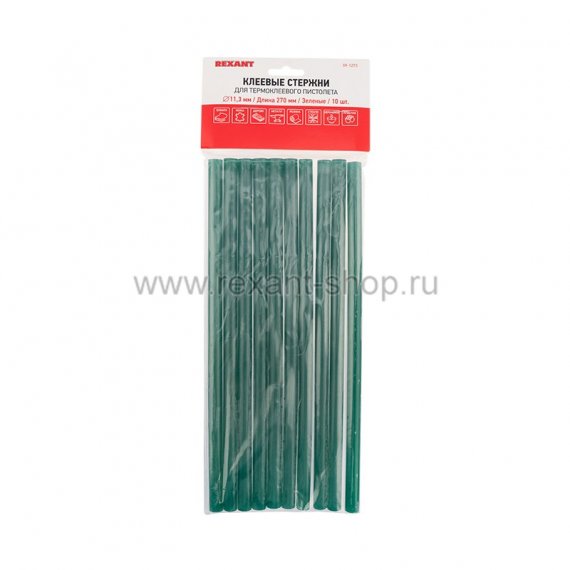 Клеевые стержни d=11,3 мм, L=270 мм, зеленые (упак. 10 шт.) REXANT
