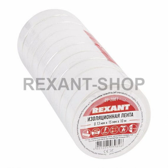 Изолента 15мм х 10м белая REXANT – это поливинилхлоридная пленка, на одну сторону которой нанесен клеевой слой. Пленка разрезана на полосы по 15 мм. В одной упаковке десять рулонов длиной по 10 метров. Вещества, входящие в состав изоленты и клеевого слоя, не поддерживают горение. Изоляционная лента устойчива к перепадам температур в рамках от -10°С до +65°С.