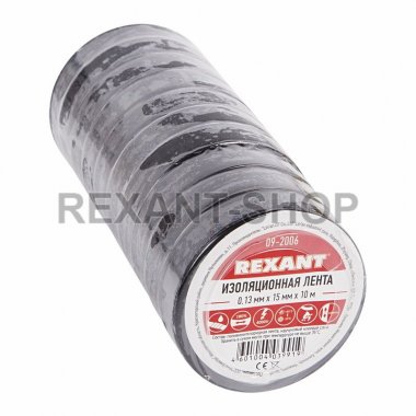 Изолента 15мм х 10м черная REXANT – это поливинилхлоридная пленка, на одну сторону которой нанесен клеевой слой. Пленка разрезана на полосы по 15 мм. В одной упаковке десять рулонов длиной по 10 метров. Вещества, входящие в состав изоленты и клеевого слоя, не поддерживают горение. Изоляционная лента устойчива к перепадам температур в рамках от -10°С до +65°С.