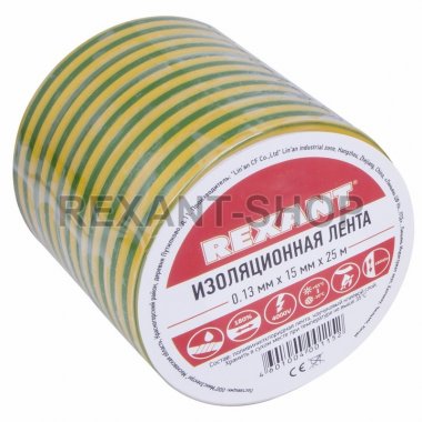 Изолента 15мм х 25м желто-зеленая REXANT
