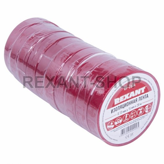 Красная изолента 15 мм на 20 метров REXANT – это поливинилхлоридная пленка, на одну сторону которой нанесен клеевой слой. Пленка разрезана на полосы по 15 мм. В одной упаковке пять рулонов длиной по 20 метров. Вещества, входящие в состав изоленты и клеевого слоя, не поддерживают горение. Изоляционная лента устойчива к перепадам температур в рамках от 0°С до +70°С.