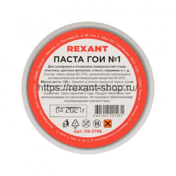 Паста ГОИ полировальная REXANT № 1, баночка 100 г