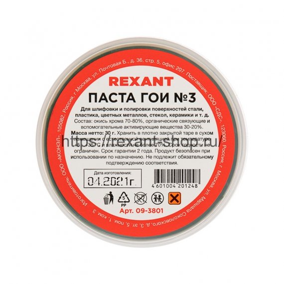 Паста ГОИ полировальная REXANT № 3, баночка 30 г (10 шт./уп.)