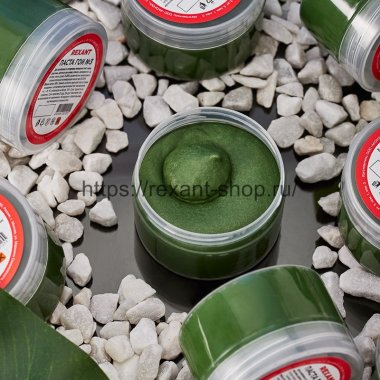 ПАСТА № 3 («средняя»). Имеет зеленый цвет и абразивность 17.0-8.0 мкм. Содержание оксида хрома от 70 до 80%. Применяется для создания чистой поверхности и получения равномерного блеска.