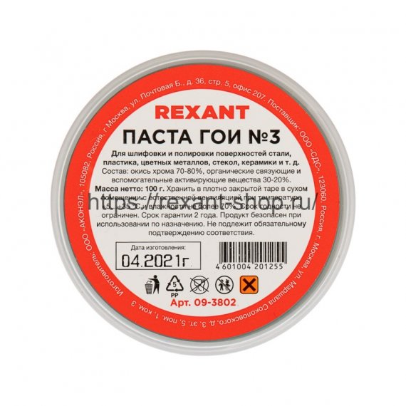 Паста ГОИ полировальная REXANT № 3, баночка 100 г