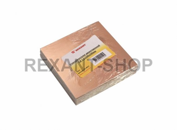Стеклотекстолит двухсторонний СФ1.5-2-0.35 100х100мм REXANT предназначен для использования в электро- и радиотехнике, для механического и электрического соединения различных электронных компонентов. Представляет собой композицию стеклоткани и связующего материала на основе эпоксидных смол, а также с двух сторон покрытый медной электролитической, гальваностойкой фольгой. Листовой текстолит служит основой для изготовления печатных плат. Благодаря своему составу из стеклоткани он отличается высокой механической прочностью при сжатии и высокой ударной вязкостью. Лист текстолита хорошо поддается любой механической обработке: резание, сверление и т.д. Эксплуатация изделия, в качестве электроизоляционного материала, должна быть в условиях нормальной относительной влажности атмосферы и при частоте тока 50Гц. Особенность изделий из стеклотекстолита - небольшой вес. Основные характеристики: