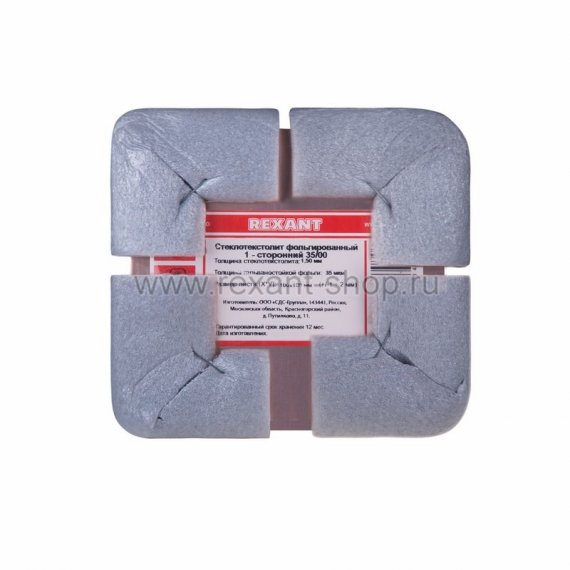 Стеклотекстолит 1-сторонний 100x100x1.5 мм 35/00 (35 мкм) REXANT представляет собой композицию стеклоткани и связующего материала на основе эпоксидных смол, а также с одной стороны покрытый медной электролитической гальваностойкой фольгой толщиной 35 мкм.
