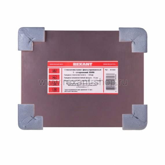 Стеклотекстолит 1-сторонний 200x250x1.5 мм 35/00 (35 мкм) REXANT представляет собой композицию стеклоткани и связующего материала на основе эпоксидных смол, а также с одной стороны покрытый медной электролитической гальваностойкой фольгой толщиной 35 мкм.