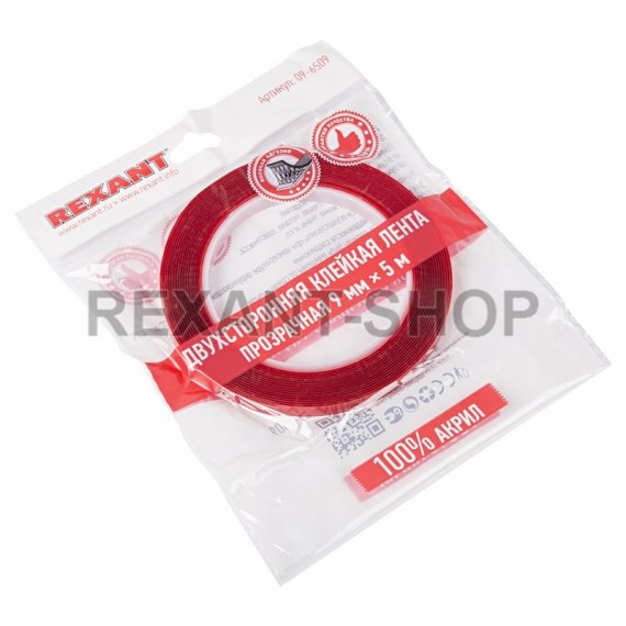 Двухсторонний скотч прозрачный 9мм 5м REXANT