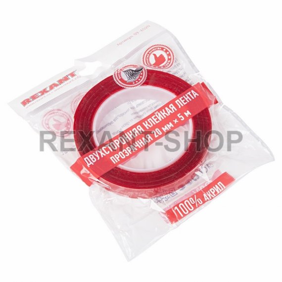 Двухсторонний скотч прозрачный 20мм 5м REXANT