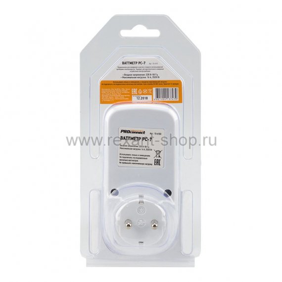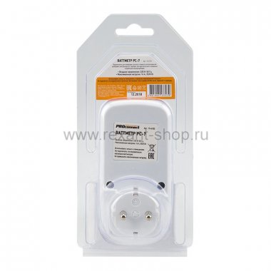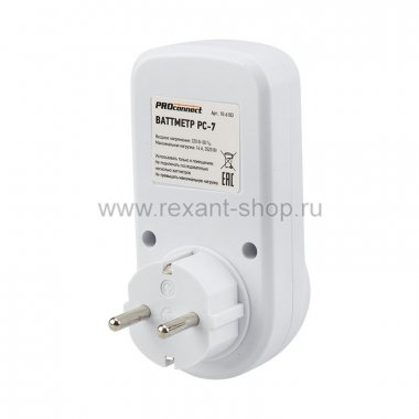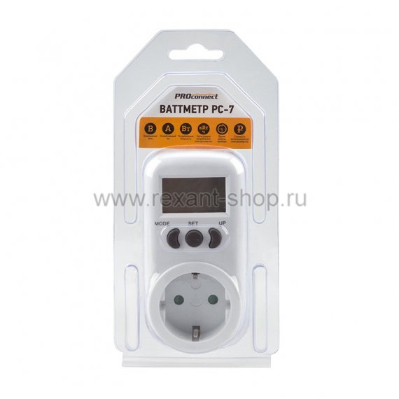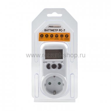 Счетчик потребляемой электроэнергии (ваттметр) PRОconnect PC-7 предназначен для измерения и контроля потребления электроэнергии различными приборами, суммарный ток которых не превышает 16 А. PC-7 оснащен возможностью установки цены киловатт-часа, что позволяет узнать и рассчитать стоимость использованной приборами электроэнергии.