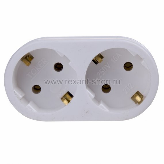 Двойник электрический , 16 А, с заземлением, белый REXANT