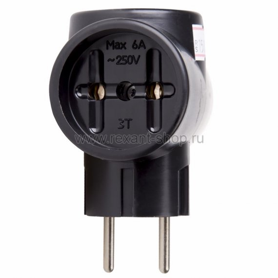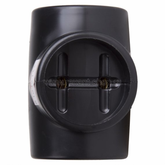 Тройник электрический, 6/10 А, без заземления, черный REXANT