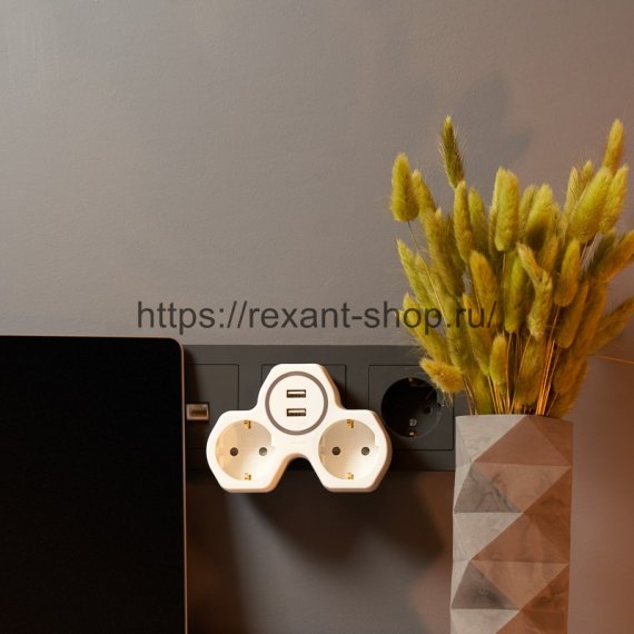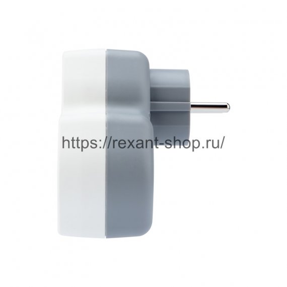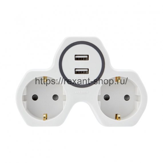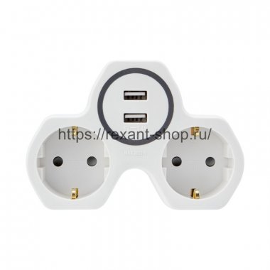 Электрический двойник REXANT предназначен для одновременного подключения к электрическим сетям с напряжением 220 В сразу два прибора со стандартной вилкой и два прибора с USB разъемами питания с максимальной мощностью 2А.