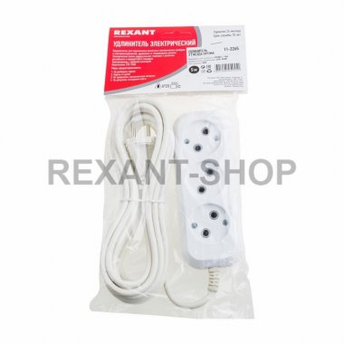 Удлинитель 3 гнезда 5м б/з OPTIMA белый REXANT специализирован для включения электро устройств и электроинструментов в обстановке , когда мало нормальной длины шнура для питания от стационарных розеток. Электронная вилка на проводе универсальная, и дозволит включиться к розеткам русского и евро эталона . С одной стороны провода находится степсельная вилка, а с иной колодка на 3 гнезда. Электропровод содержит двойную изоляцию.