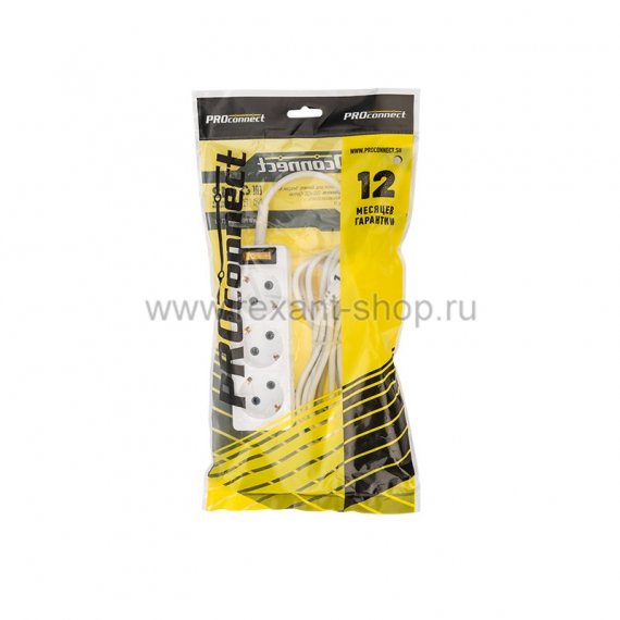 Удлинитель 3 гнезда 1,5 м, 3х0,75 мм?, с/з, с кнопкой PREMIUM белый PROconnect