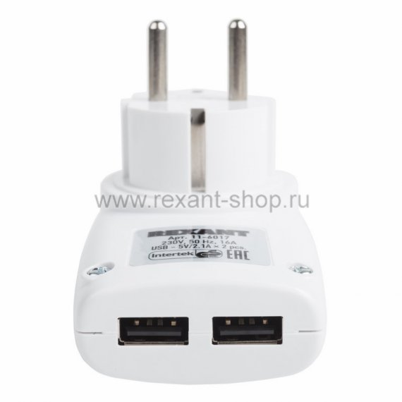 Адаптер питания 220В + 2 USB REXANT RX-17