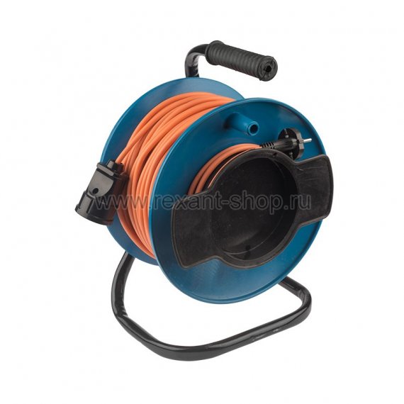 Удлинитель на катушке ПВС 2х0,75 мм², 50 м., оранжевый (газон) REXANT широко распространен для эксплуатации на садовом участке (подключения электрических триммеров, газонокосилок, пил и т. д.). Изделие имеет яркий, заметный в траве провод оранжевого цвета. Вилка удлинителя подключается к стационарной сети, а розетка подключается к электроприбору на расстоянии до 50 метров. Для безопасного использования изделия предусмотрена защита от перенапряжения. Шнур размещен на пластиковой катушке. Металлическая подставка придает прочности и устойчивости всей конструкции.