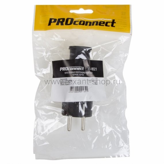 Вилка прямая влагозащищенная, с/з, 16А, IP44, черная, каучук PROCONNECT