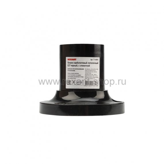 Патрон карболитовый потолочный Е27 черный c этикеткой REXANT