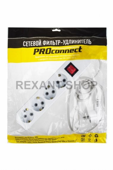 Сетевой фильтр PROCONNECT 4 гнезда 1,5 м,3х0,75 мм2, белый