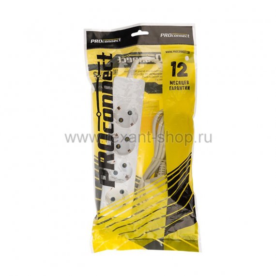 Удлинитель 4 гнезда 3 м 3х0,75 мм? с/з PREMIUM белый PROconnect