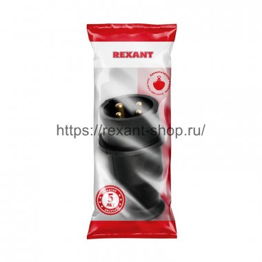 Вилка переносная влагозащищенная 3Р+РЕ, 32 А, IP44 каучук, черная REXANT