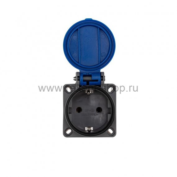 Розетка влагозащищенная с крышкой, с/з, скрытая установка,16 А, IP54 каучук REXANT