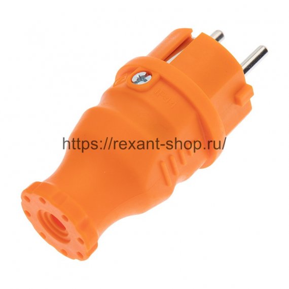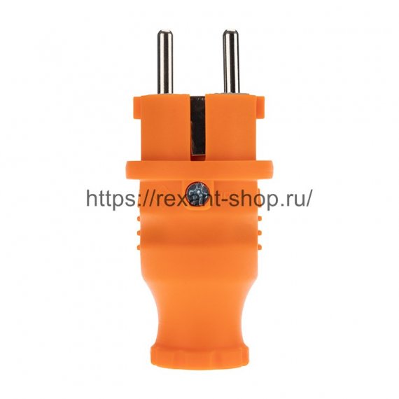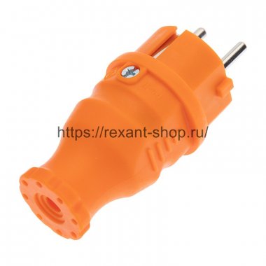 Вилка прямая влагозащищенная, c/з, 16 А, IP44, каучук оранжевая REXANT