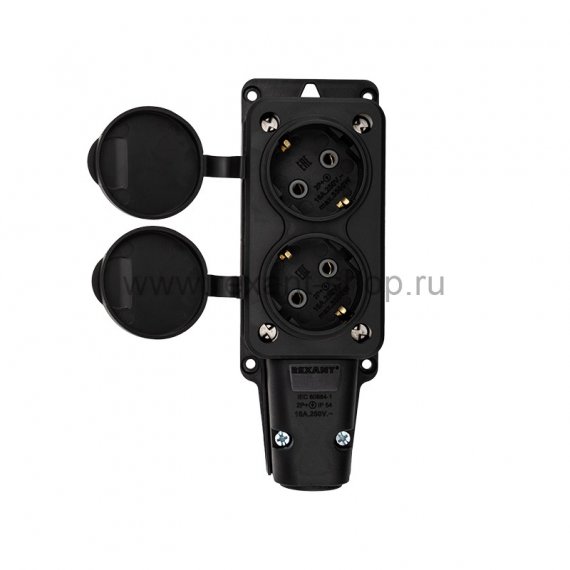 Розетка штепсельная двухместная влагозащищенная, с/з, 16 А, IP54 каучук REXANT