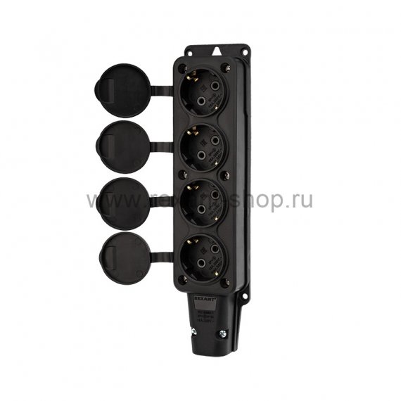 Розетка штепсельная четырехместная влагозащищенная, с/з, 16 А, IP54 каучук REXANT