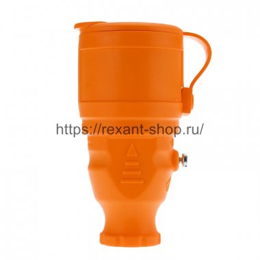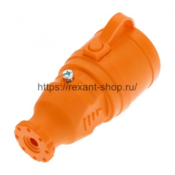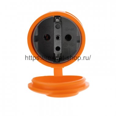 Розетка переносная влагозащищенная с крышкой, с/з, 16 А, IP44, каучук оранжевая REXANT
