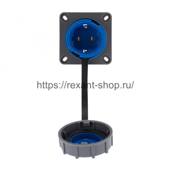 Розетка настенная фланцевая влагозащищенная с крышкой 16 А, 2Р+РЕ, IP68 REXANT