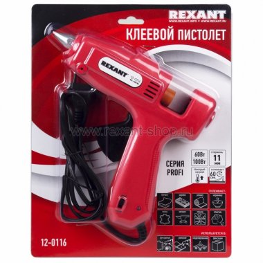 Пистолет клеевой 60Вт-100Вт (Профи) REXANT предназначен для прочной фиксации поверхностей с помощью расплавленной клеевой массы. Пистолет работает в двух мощностных режимах: 60 Вт и 100 Вт. Заправляется он специальным клеевым стержнем диаметром 11 мм. Корпус клеевого пистолета изготовлен из ударопрочной пластмассы и имеет скобу для надежной установки в нерабочем положении. Благодаря индикации на корпусе пистолета (LED-лампочки красного и зеленого цветов) удобно определить включен ли пистолет и когда будет достигнута оптимальная для работы температура. Принцип работы: клеевой стержень плавится в металлической камере с помощью нагревательного устройства и для точного дозирования при нажатии на курок подаётся из сопла на склеиваемую поверхность. Высокая мощность пистолета позволяет очень быстро разогреть клеевой стержень и получать удовольствие от быстрой и бесперебойной работы. С его помощью вы сможете склеить: дерево, пластик, резину, кожу, стекло, металлы (их лучше перед работой разогревать феном), ткань, пенопласт, керамику, картон, бумагу, цветы или что-то другое. Используется как в домашних условиях, так и на производстве: для монтажа электрических плат, декорирования, изготовления упаковочной и сувенирной продукции, при прокладке кабеля сетей фиксированной телефонной связи и сетей передачи данных, при производстве багетов и картинных рам. Для возможности хорошо ознакомиться с товаром не вынимая его из упаковки, безопасного хранения и бережной транспортировки предусмотрена блистерная упаковка.