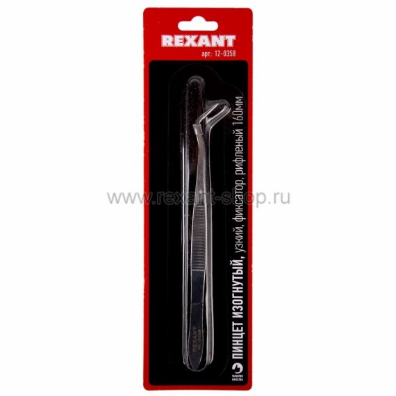 Пинцет изогнутый, узкий, фиксатор, рифленый 160мм REXANT предназначен для различных работ и операций с мелкими предметами в труднодоступных местах.