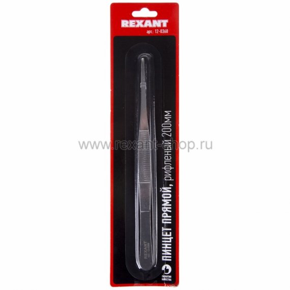 Пинцет прямой, рифленый 200мм (блистер) REXANT