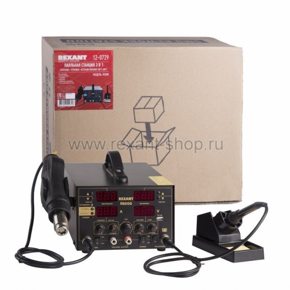 Паяльная станция (паяльник + термофен + источник питания) 3 в 1 100-480°С (R5000) REXANT